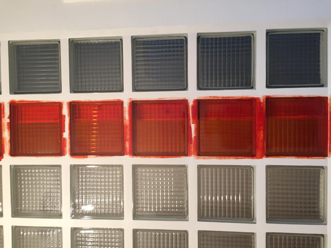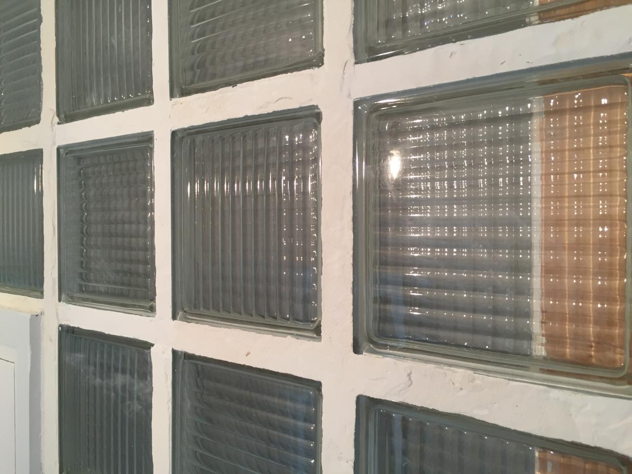 Une partie du mur est en carreaux de verre et les joints sont à refaire